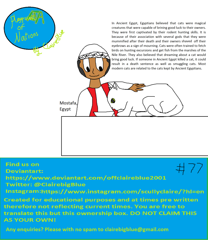 In Ancient Egypt, Egyptians believed that cats were magical creatures that were capable of bringing good luck to their owners. They were first captivated by their rodent hunting skills. It is because of their association with several gods that they were mummified after their death and their owners shaved off their eyebrows as a sign of mourning. Cats were often trained to fetch birds on hunting excursions and get fish from the marshes of the Nile River. They also believed that dreaming about a cat would bring good luck. If someone in Ancient Egypt killed a cat, it could result in a death sentence as well as smuggling cats. Most modern cats are related to the cats kept by Ancient Egyptians.