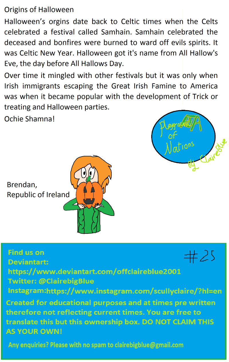 Over time it mingled with other festivals but it was only when Irish immigrants escaping the Great Irish Famine to America was when it became popular with the development of Trick or treating and Halloween parties.