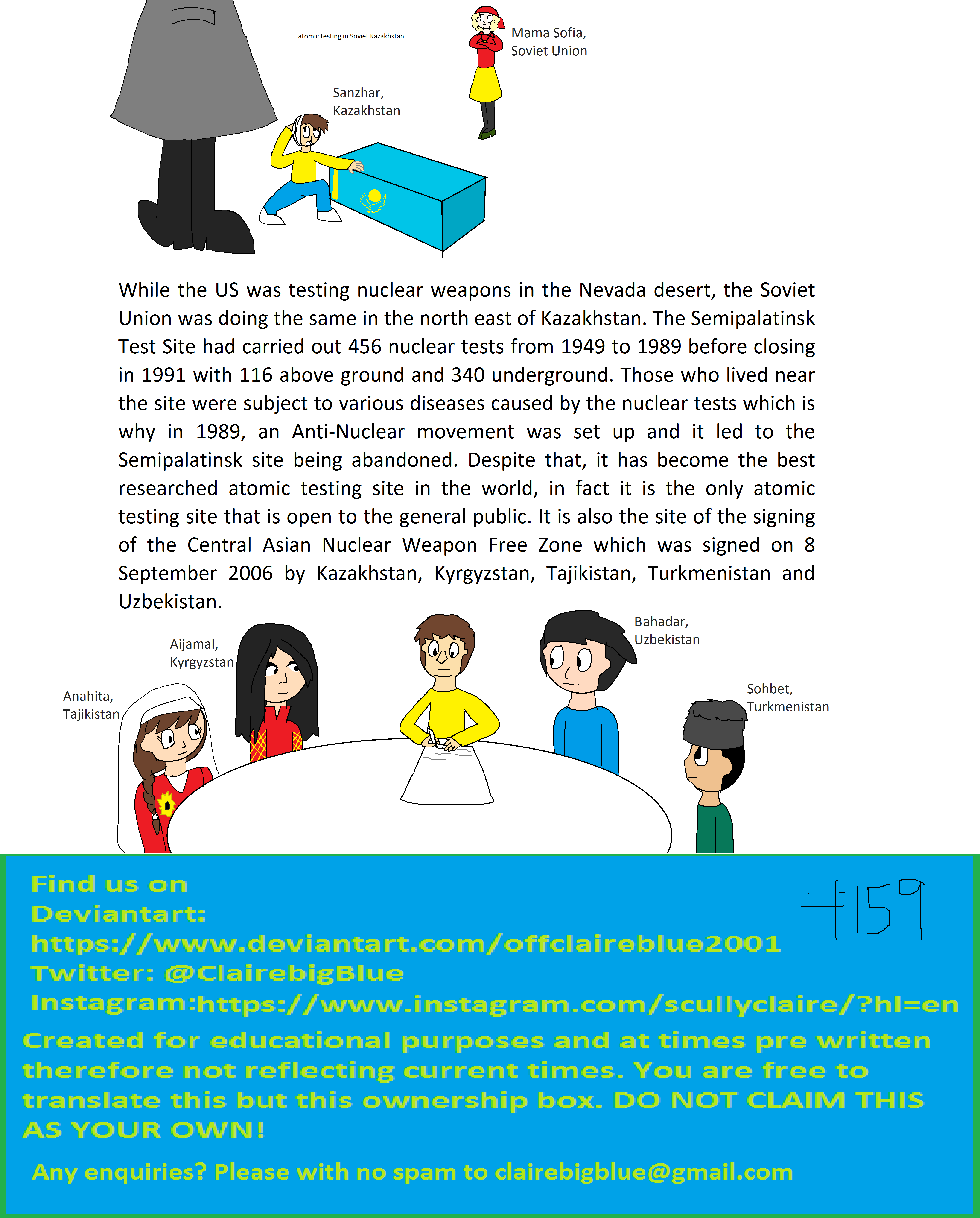 While the US was testing nuclear weapons in the Nevada desert, the Soviet Union was doing the same in the north east of Kazakhstan. The Semipalatinsk Test Site had carried out 456 nuclear tests from 1949 to 1989 before closing in 1991 with 116 above ground and 340 underground. Those who lived near the site were subject to various diseases caused by the nuclear tests which is why in 1989, an Anti- Nuclear movement was set up and it led to the Semipalatinsk site being abandoned. Despite that, it has become the best researched atomic testing site in the world, in fact it is the only atomic testing site that is open to the general public. It is also the site of the signing of the Central Asian Nuclear Weapon Free Zone which was signed on 8 September 2006 by Kazakhstan, Kyrgyzstan, Tajikistan, Turkmenistan and Uzbekistan.