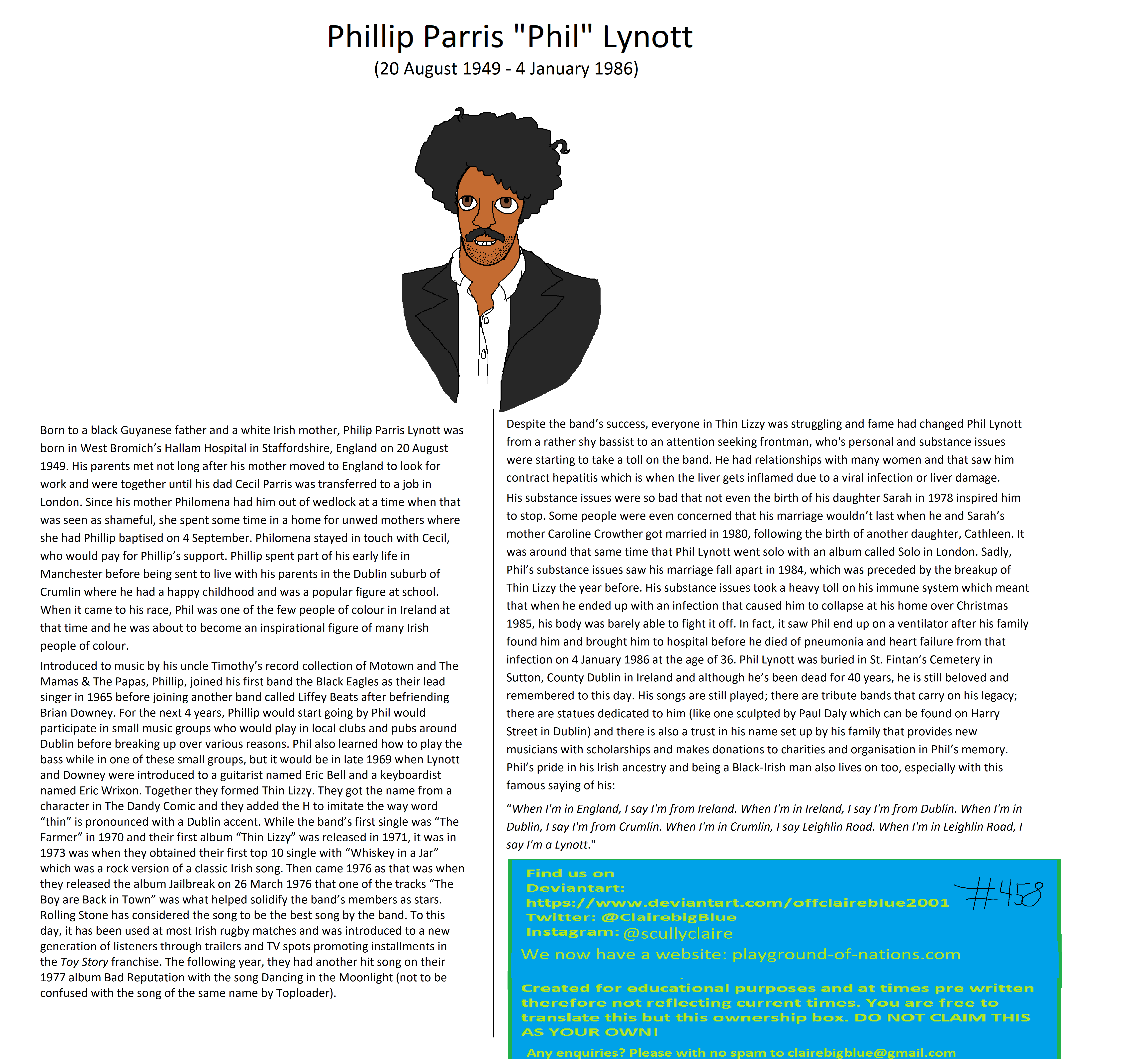Born to a black Guyanese father and a white Irish mother, Philip Parris Lynott was born in West Bromich’s Hallam Hospital in Staffordshire, England on 20 August 1949. His parents met not long after his mother moved to England to look for work and were together until his dad Cecil Parris was transferred to a job in London. Since his mother Philomena had him out of wedlock at a time when that was seen as shameful, she spent some time in a home for unwed mothers where she had Phillip baptised on 4 September. Philomena stayed in touch with Cecil, who would pay for Phillip’s support. Phillip spent part of his early life in Manchester before being sent to live with his parents in the Dublin suburb of Crumlin where he had a happy childhood and was a popular figure at school. When it came to his race, Phil was one of the few people of colour in Ireland at that time and he was about to become an inspirational figure of many Irish people of colour.